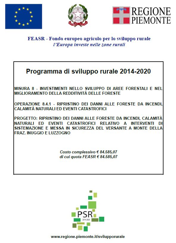 Progetto: Ripristino dei danni alle foreste da incendi, calamità natulari ed eventi catastrofici relativo a interventi di sistemazione e messa in sicurezza del versante a monte della Fraz. Inuggio e Luzzogno.