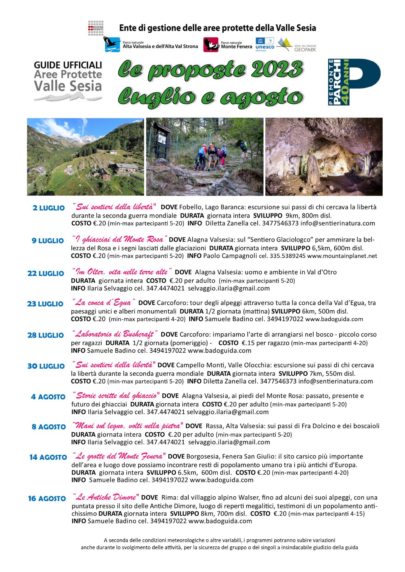Escursioni proposte per Luglio e Agosto dall'Ente di gestione delle aree protette della Valsesia