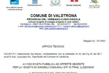 AVVISO D’ASTA PUBBLICA AD OFFERTE SEGRETE PER LA VENDITA DI IMMOBILI COMUNALI SITI IN FRAZ. LUZZOGNO