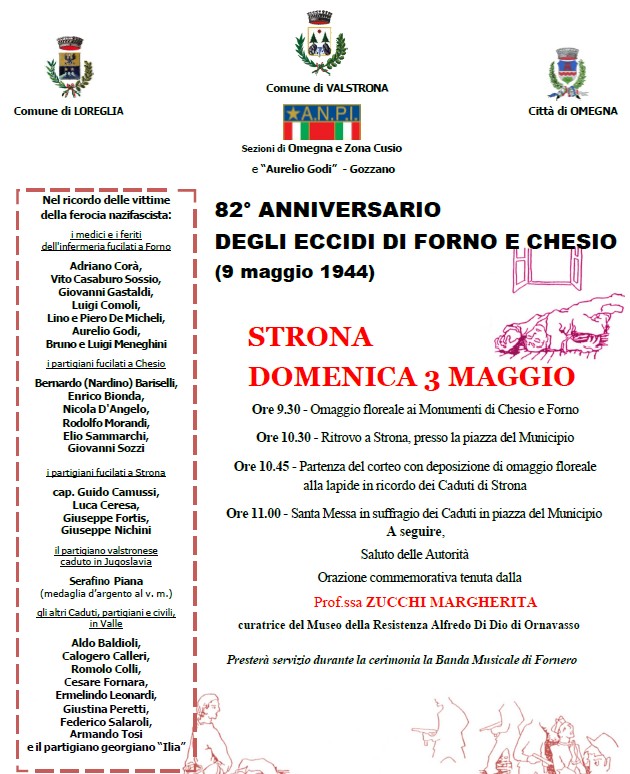 82° ANNIVERSARIO DEGLI ECCIDI DI FORNO E CHESIO (9 maggio 1944)