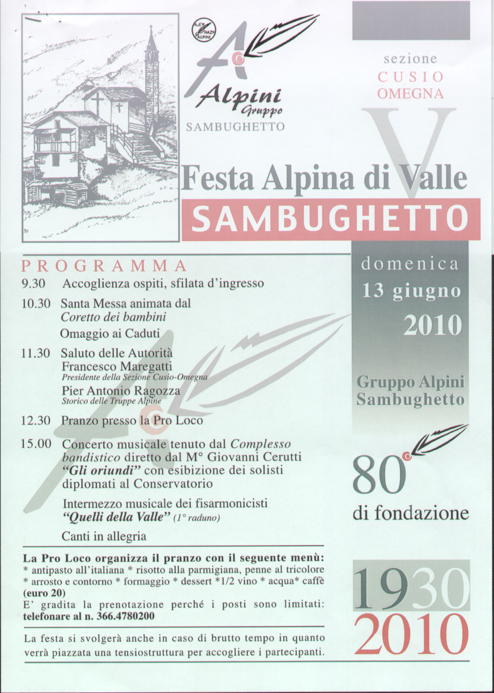 Domenica 13 giugno 2010 il Gruppo Alpini Sambughetto festeggia l'80° di fondazione. In allegato, il programma della manifestazione.