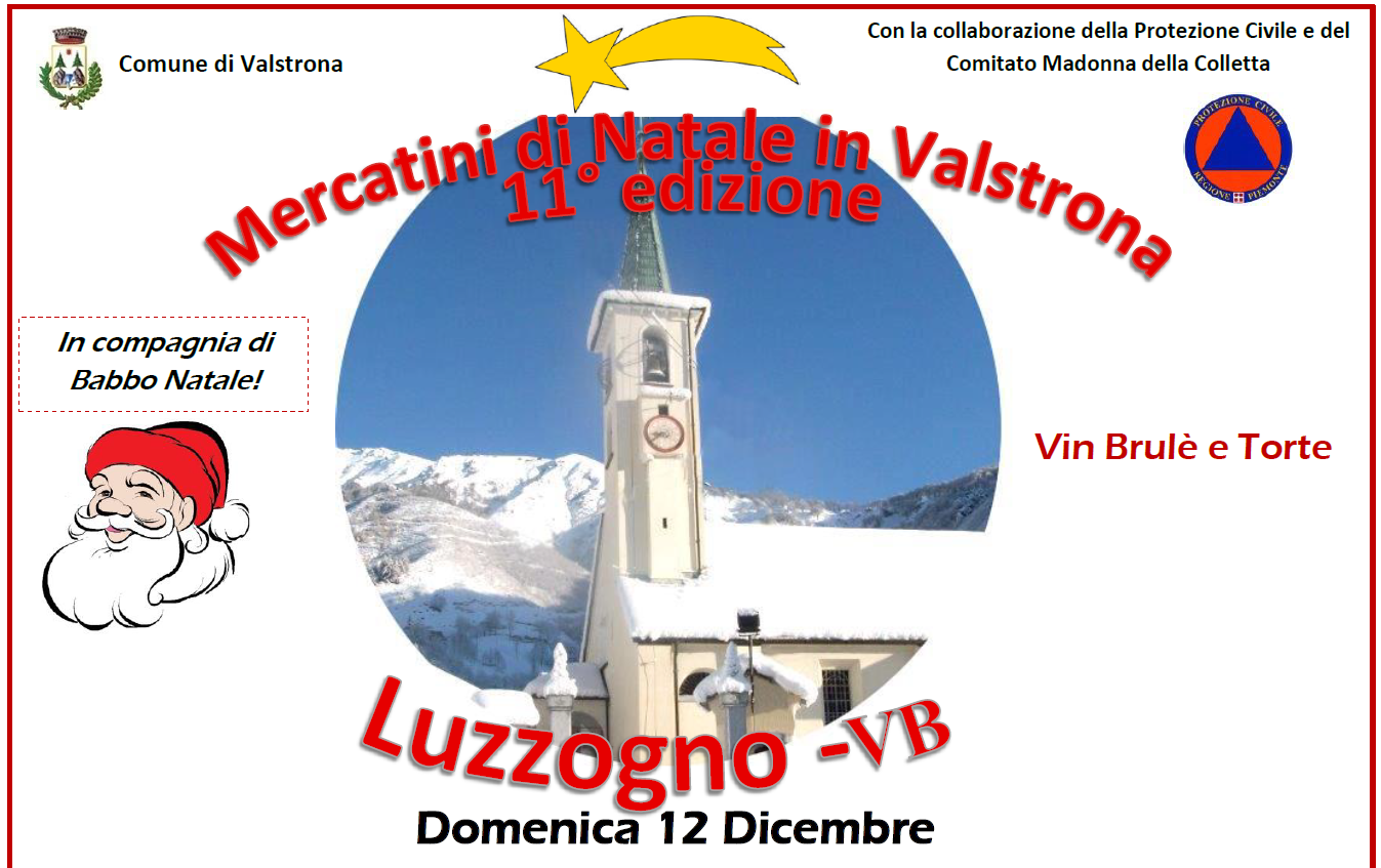 In allegato il programma dell'11a Edizione dei Mercatini di Natale in Valstrona che si svolgeranno Domenica 12 Dicembre a Luzzogno.