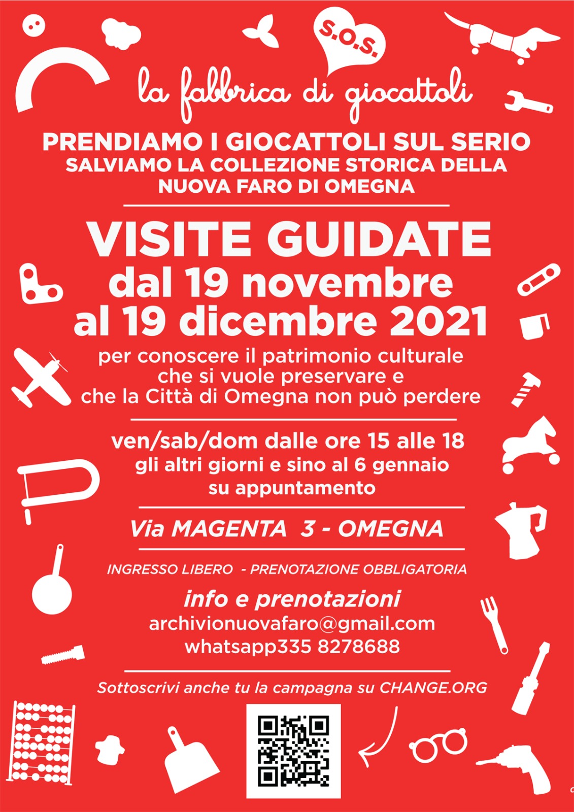 Per dar modo alla comunità di conoscere il patrimonio unico che si vuole preservare dal 19 novembre al 19 dicembre 2021 sarà possibile prenotare una visita guidata dell’area in cui sono attualmente confluiti gli elementi di un’importante storia industriale lunga 70 anni che ripercorre le abitudini di gioco di tantissime generazioni di bambini.