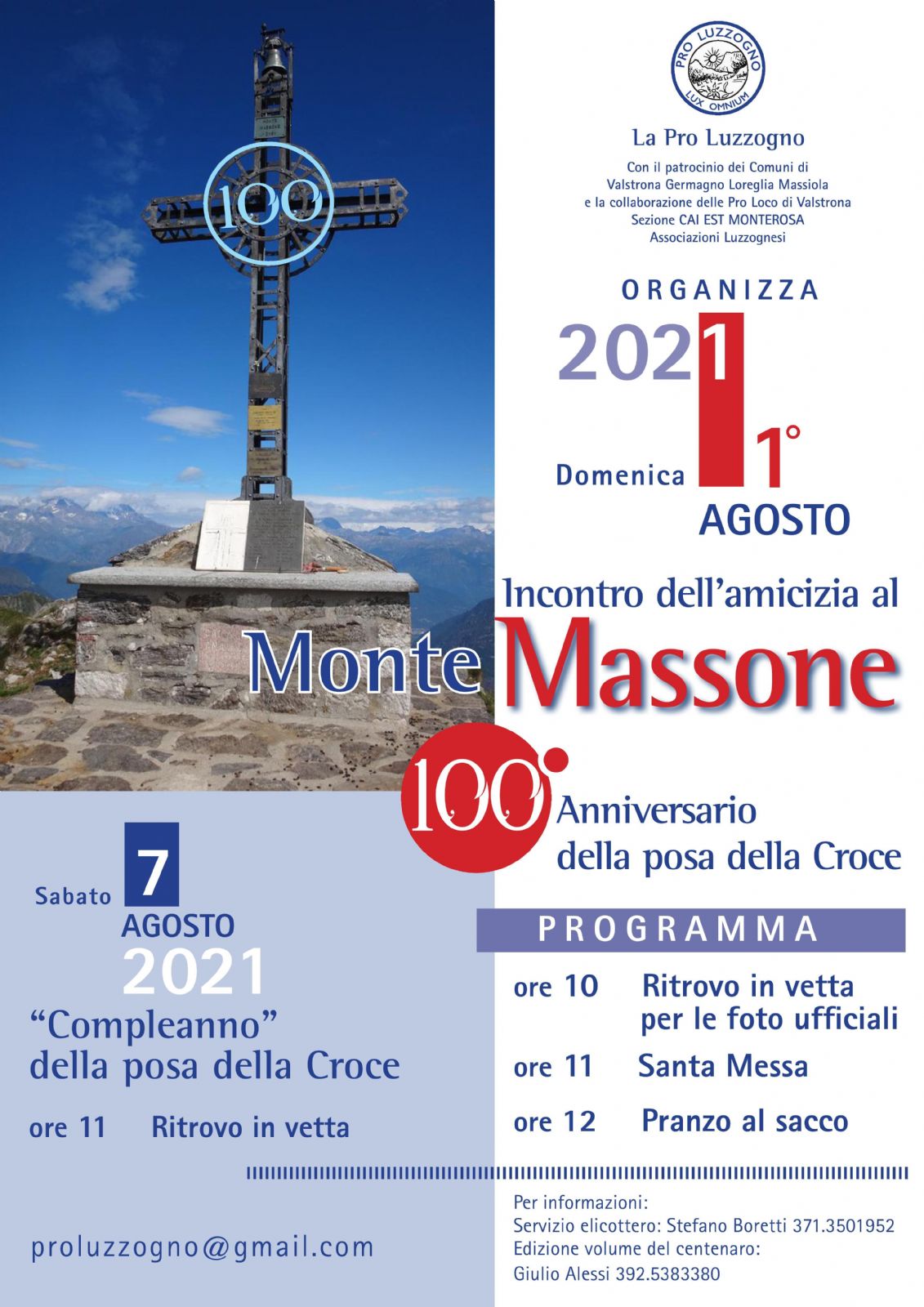 "Incontro dell'amicizia al Monte Massone" Festa per i 100 anni della Croce Domenica 7 Agosto 2021