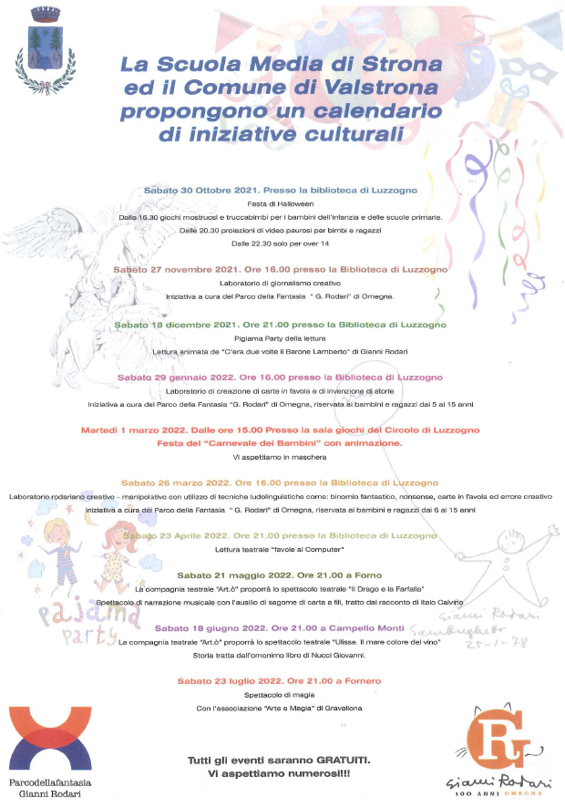 Iniziative culturali proposte dalla Scuola Media di Strona ed il Comune di Valstrona