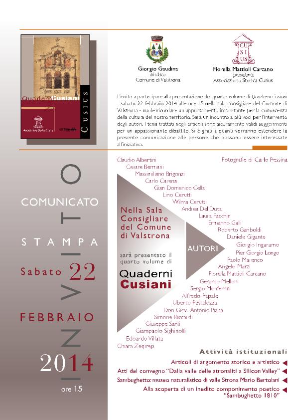 PRESENTAZIONE IV VOLUME "QUADERNI CUSIANI"