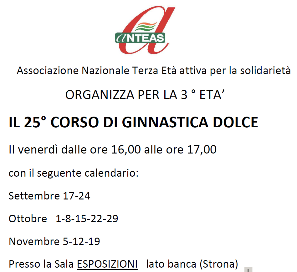 In allegato volantino con le date del corso organizzato da Anteas presso la sala esposizioni a lato della banca di Strona.